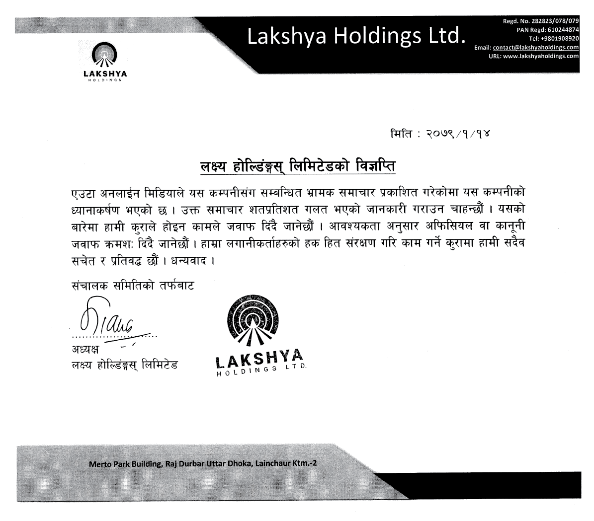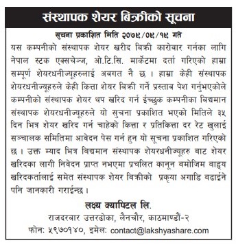 लक्ष्य क्यापिटल लि., उत्तरढोका, काठमाण्डौं २